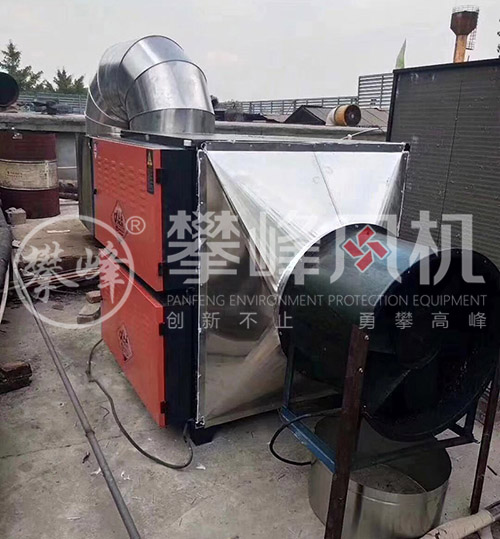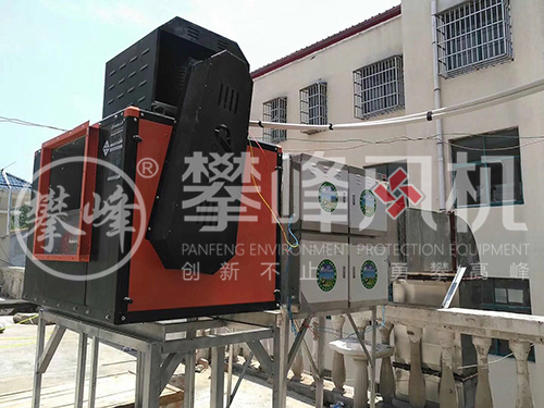 PVC手套在高溫生產烘制過程中,有10-15%的混合料溶劑揮發形成烘烤煙氣〔由降粘劑,DOP、TXIB、DOA、環氧大豆油、鈣鋅穩(安)定劑組成〕,這些煙氣彌漫在車間內部會嚴重影響生產環境的清潔,直接排放到外界空氣中也會造成原材料浪費。